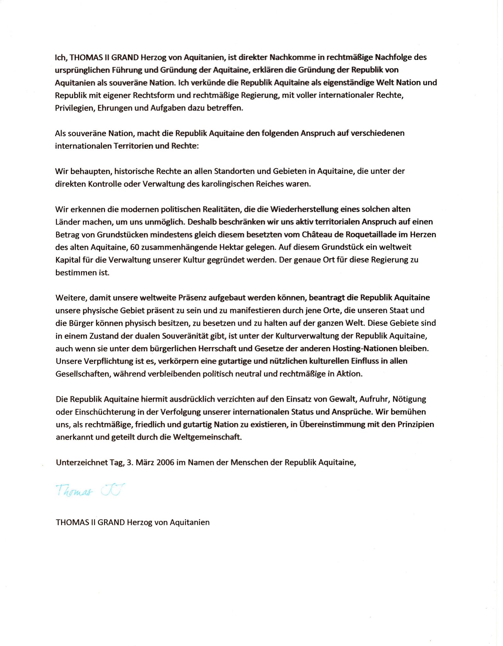 Home Geschichte Souveränitätserklärung Adelstitel Castle Kontakt Passport